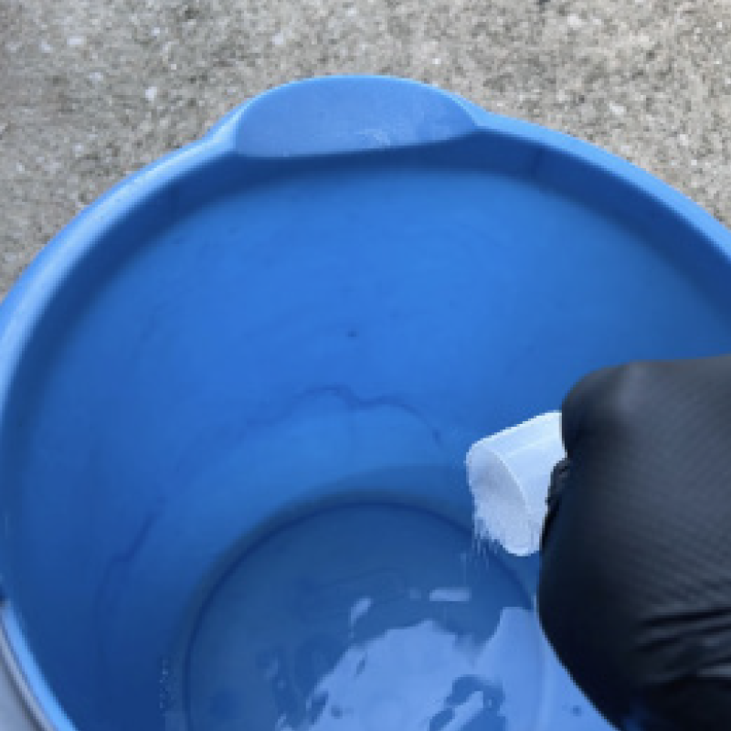 2: Pour scoop into bucket with 1-2 inches of water
