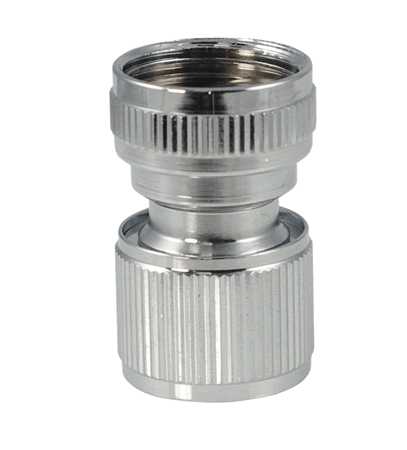The Wysiwash Female Quick Connector makes connecting and disconnecting a hose to the Wysiwash Sanitizing System easy and fast. First, fasten the Female Quick Connector to a standard garden hose. Then push back the neck of the Female Quick Connector to attach the hose to the Wysiwash Sanitizing System.