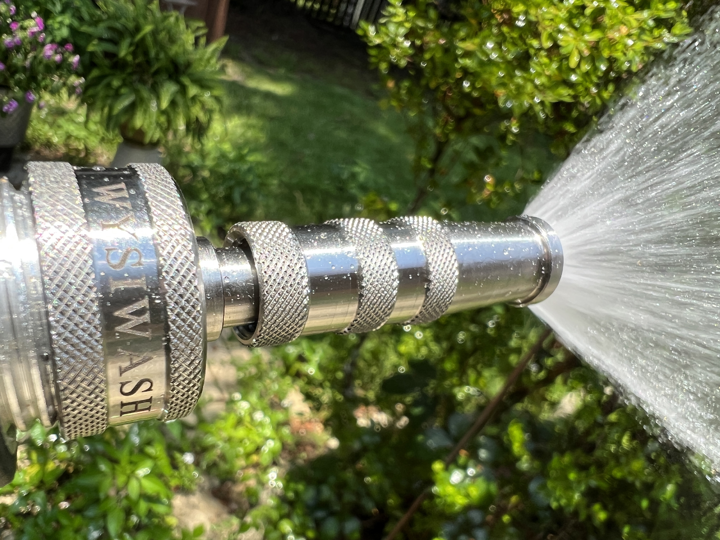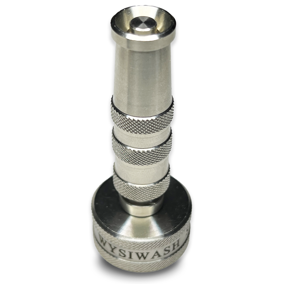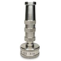 Introducing the one-of-a-kind Wysiwash SS 316 Nozzle, made with 100% 316 stainless steel, which is used in the aerospace industry, chemical industry, marine industry, and many others. This garden-hose twist nozzle is highly corrosion resistant and extremely durable, resulting in a nozzle that is suitable for use in any environment. The Wysiwash 316 will not oxidize and turn green like brass nozzles.