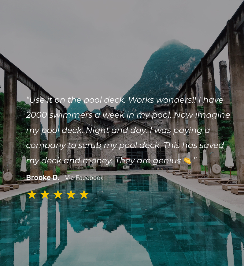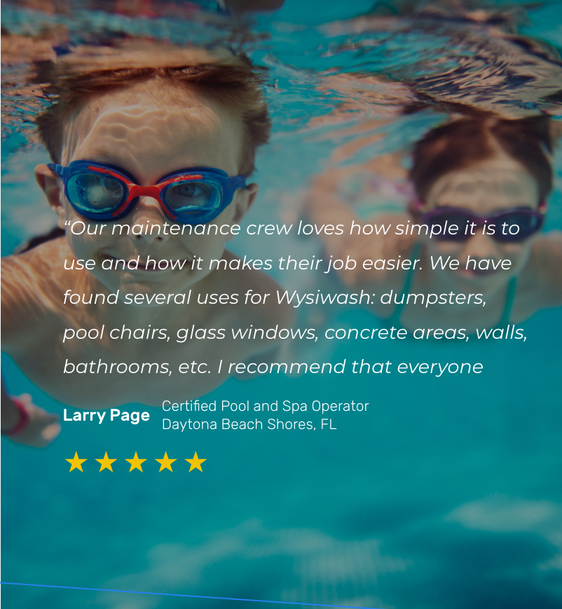 With Wysiwash, you can spray down your entire pool deck—including the chairs, railings, and showers—in just minutes. Wysiwash is no mix, no rinse, and it won’t destabilize your pool’s pH, so you can sanitize and get back to business.