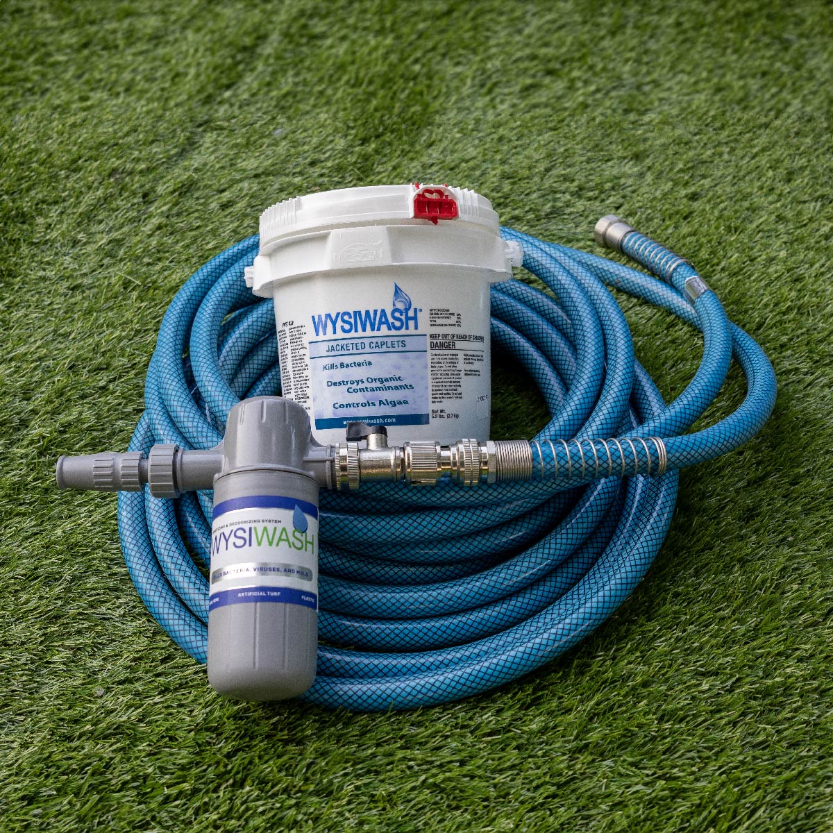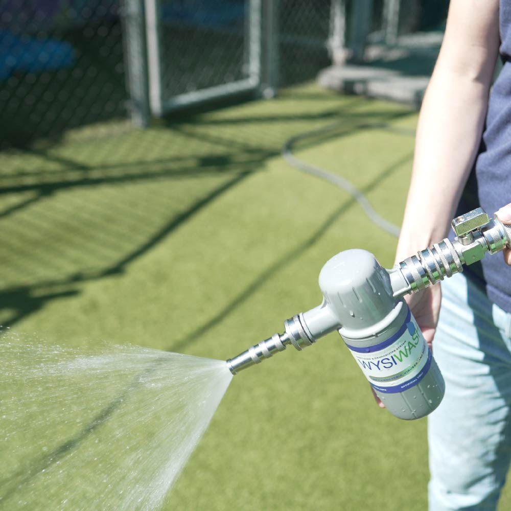 Keep your artificial grass smelling clean and fresh with the Wysiwash Sanitizing System. Wysiwash is a powerful, eco-friendly deodorizer that removes the smells left behind by pet urine and feces on artificial grass in just one step.