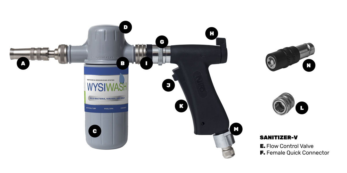 G. Nozzle-End Female Quick Connector Attaches the Wysiwash Hydro Body to the Sanitizer Pro Handle